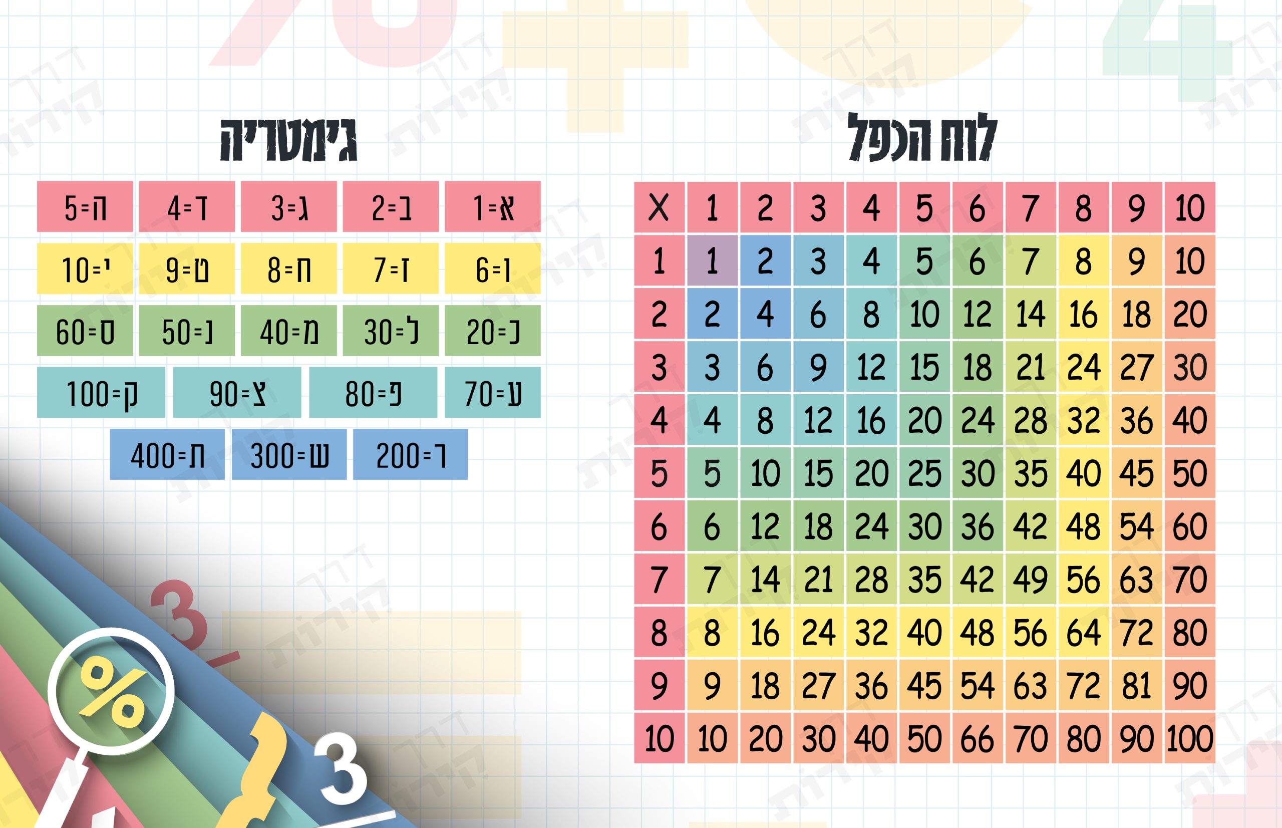 מתאים לכיתות יסוד – לשימוש בכיתה או במסדרון הלימודי, כחיזוק ויזואלי לתרגול מתמטי.