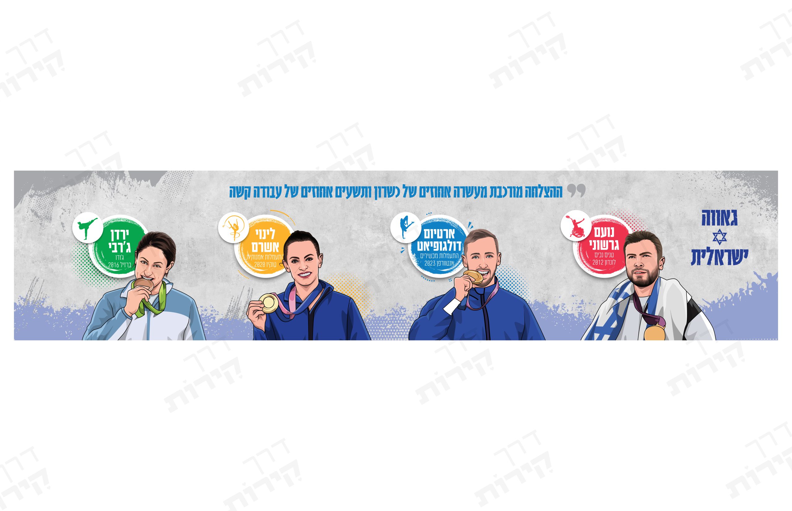 ספורט הוכח כבעל יתרונות רבים לילדים, הן פיזית והן נפשית. משיפור בריאות גופנית ומיומנויות מוטוריות ועד לפיתוח מיומנויות עבודת צוות והגברת הביטחון העצמי, ספורט יכול לעזור לילדים בהיבטים רבים של חייהם. הוא גם מלמד אותם איך להתמודד עם כישלון ולהצליח בחיים. בעיצוב שלפניכם כמה דמויות מופת בספורט הישראלי.